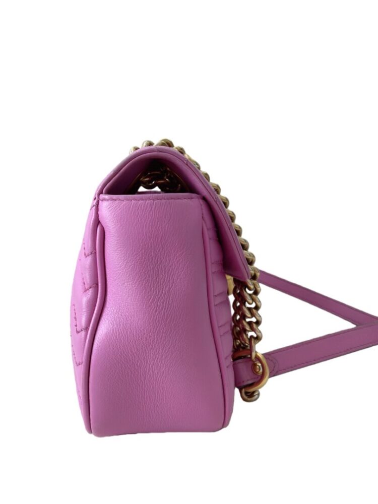 GUCCI Calfskin Matelasse Small GG Marmont Shoulder Bag Candy Mousse