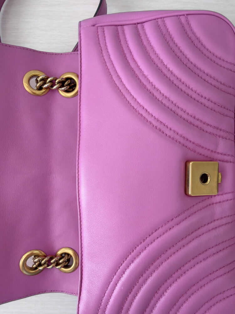 Be the first to review “GUCCI Calfskin Matelasse Small GG Marmont Shoulder Bag Candy Mousse”
